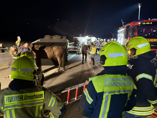 Am Mittwochabend um 20:51 Uhr wurde die Feuerwehr mit einem Großaufgebot zu einem verunfallten Pferdetransporter mit Pferdeanhänger auf die Autobahn 28 alarmiert.